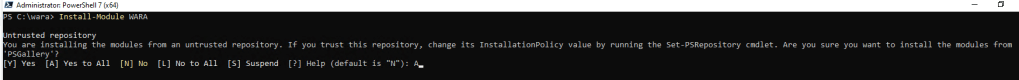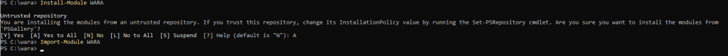 Install-Module WARA – marque (A) para instalar todos os