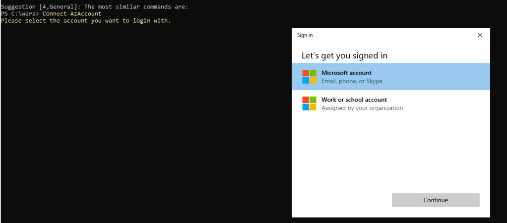 Connect-AzAccount –