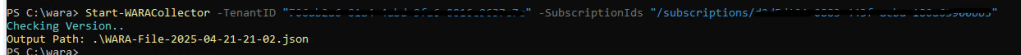 Start-WARACollector -TenantID “00000000-0000-0000-0000-000000000000” -SubscriptionIds “/subscriptions/00000000-0000-0000-0000-000000000000”