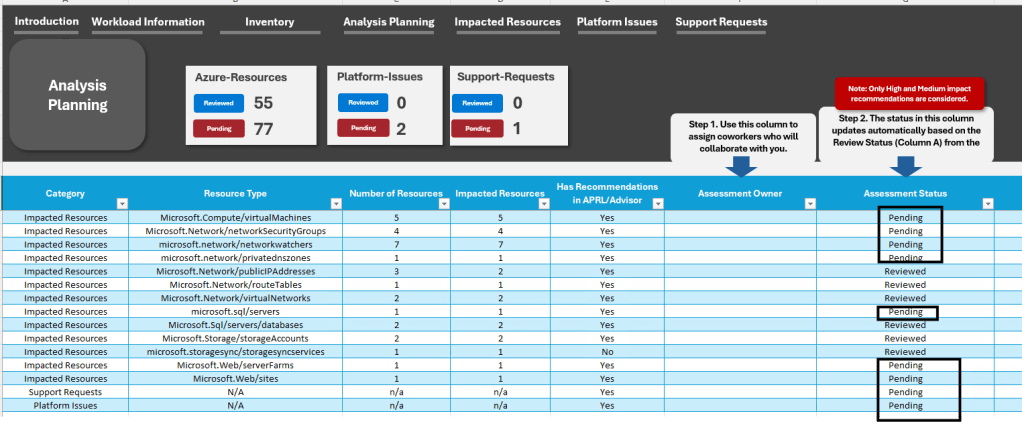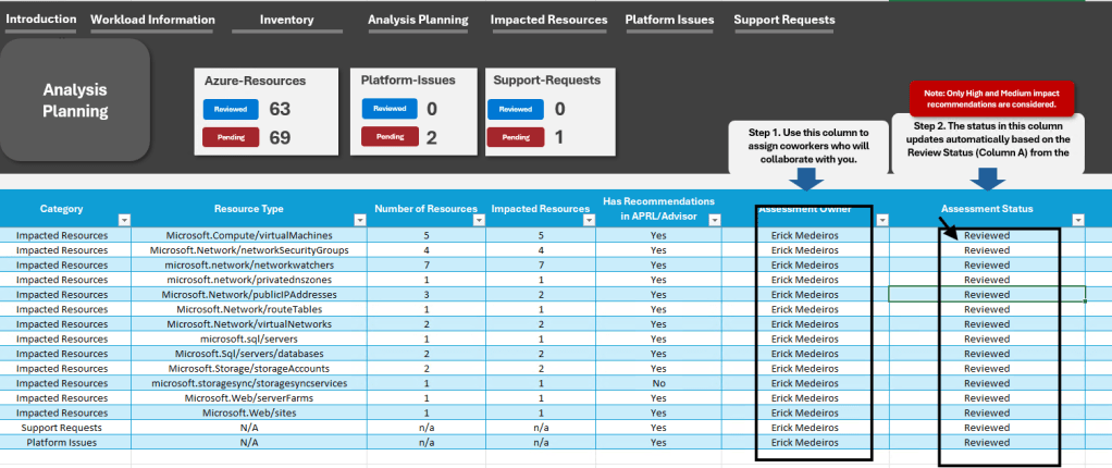 Levantamento de informações sobre a arquitetura e objetivos de negócio da aplicação. - Assessment (Excel Expert Analysis)