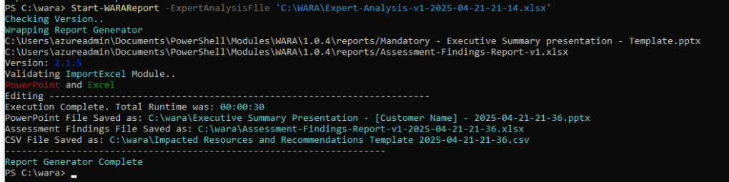 Start-WARAReport -ExpertAnalysisFile ‘C:\WARA\Expert-Analysis-v1-2025-02-04-11-14.xlsx’