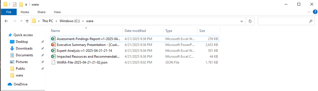 Agora você terá seus relatórios do PowerPoint e do Excel gerados no diretório C:\WARA
