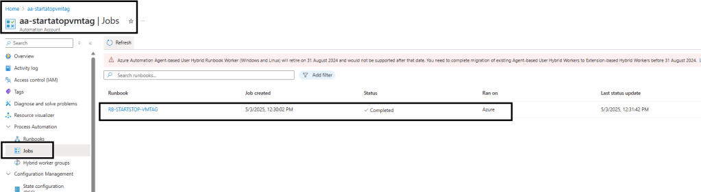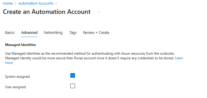 Iremos configurar uma identidade gerenciada para a conta de automação aa-startstopvmtag