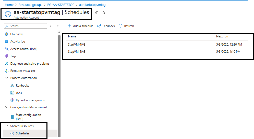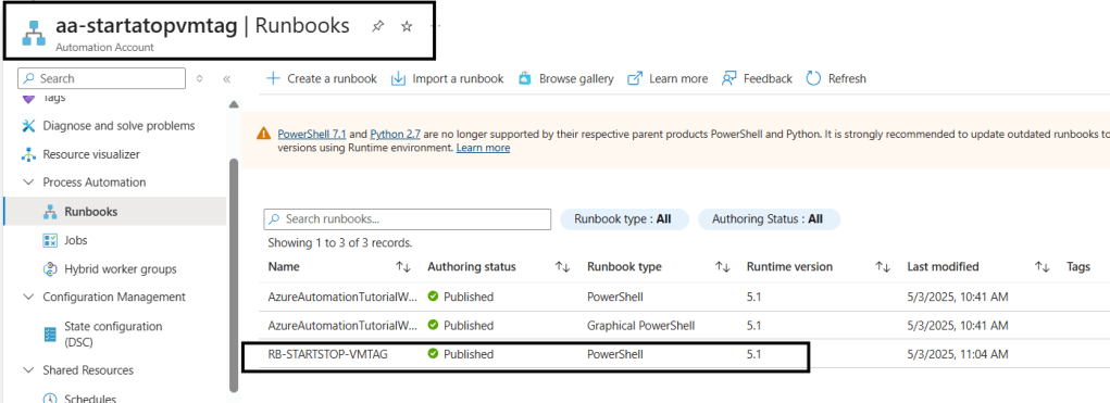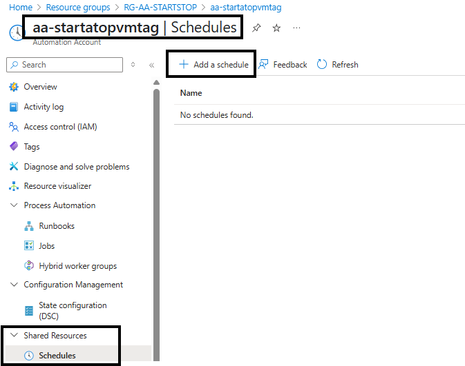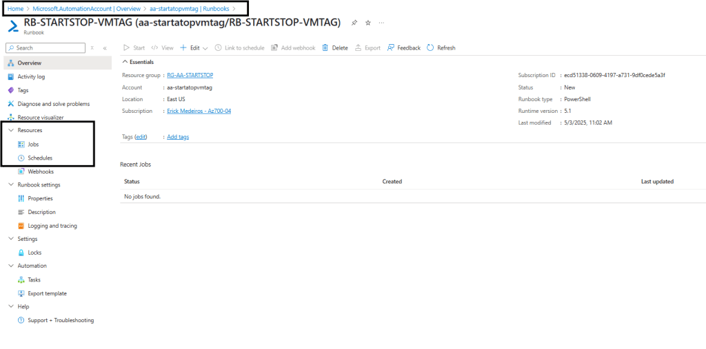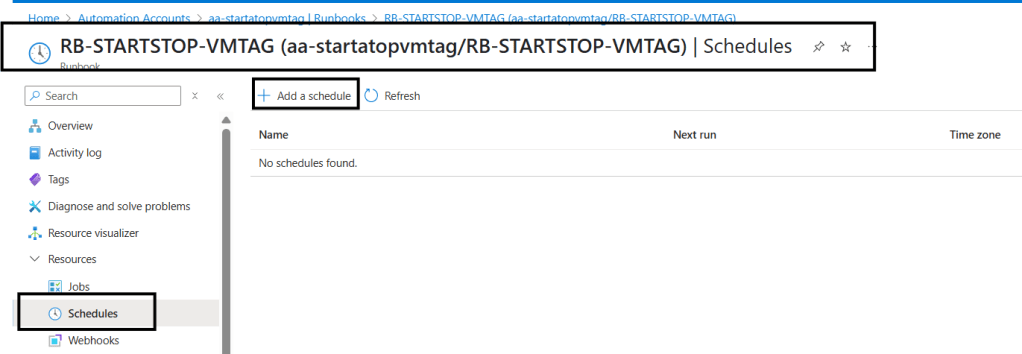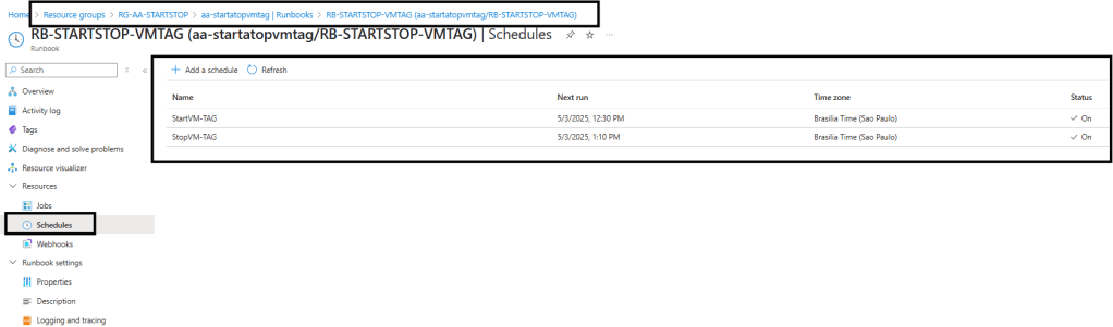 Com o Runbook já publicado, vamos iniciar as configurações de Schedule.