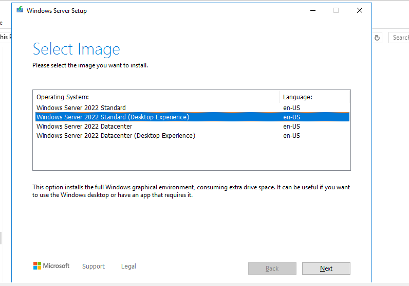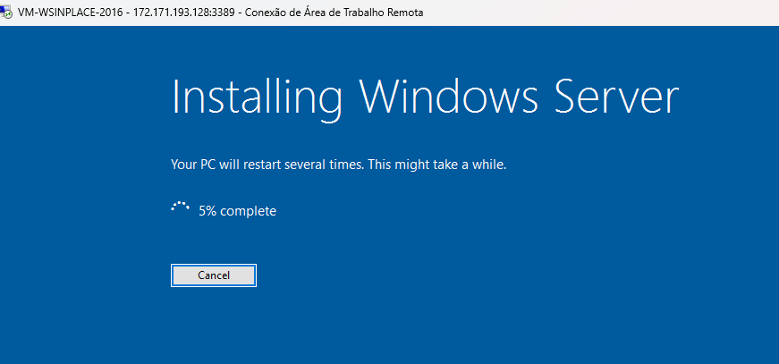 Conecte na sua vm ws2016 e acesse o disco anexado da Vm como Iso através do Setup.
