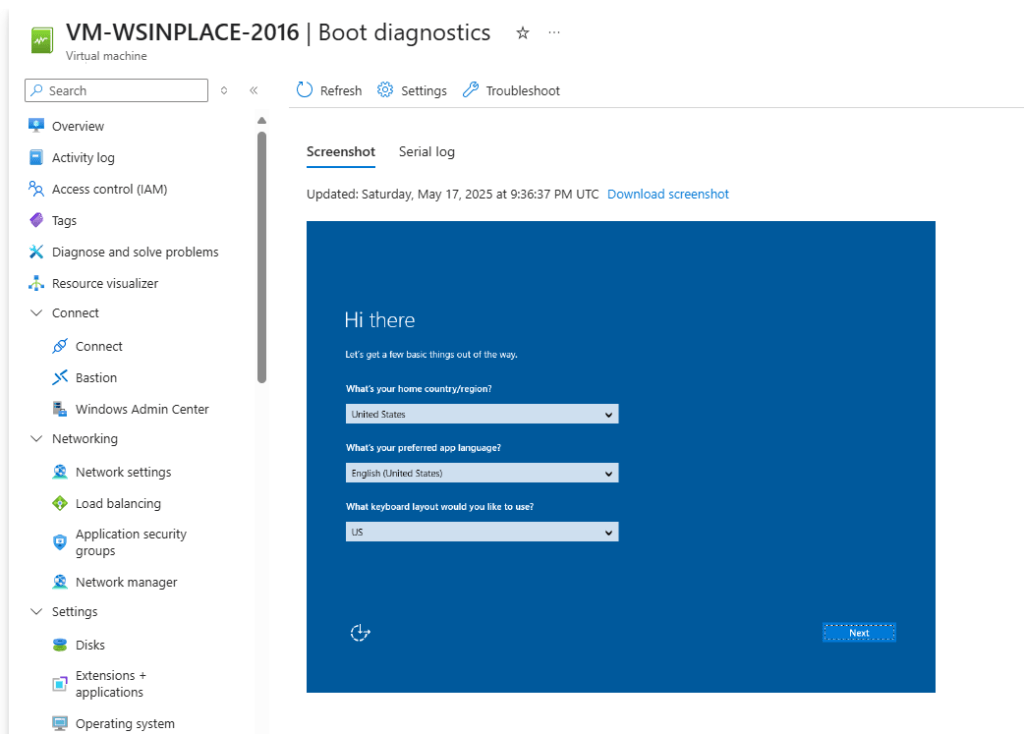 🔒 Importante: O upgrade in-place é compatível apenas com discos gerenciados e exige que a VM tenha sido provisionada com o idioma