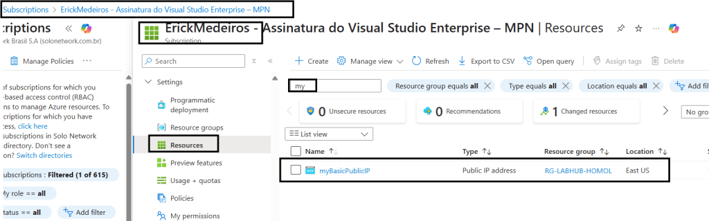 03 – Entre na sua assinatura (subscription), localize a opção de recursos e busque pelo seu IP público que precisa ser convertido.