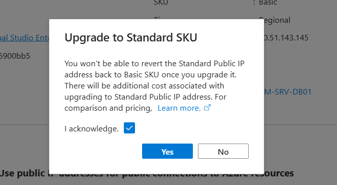Em 30 de setembro de 2025, os IPs públicos do SKU Básico serão desativados. Para saber mais, confira o anúncio oficial. Se você estiver usando os IPs públicos do SKU Básico, certifique-se de atualizar para IPs públicos do SKU Standard antes da data de desativação. Este artigo ajudará você com o processo de atualização.