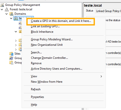 Vamos criar uma nova GPO e colocar um nome para a mesma: