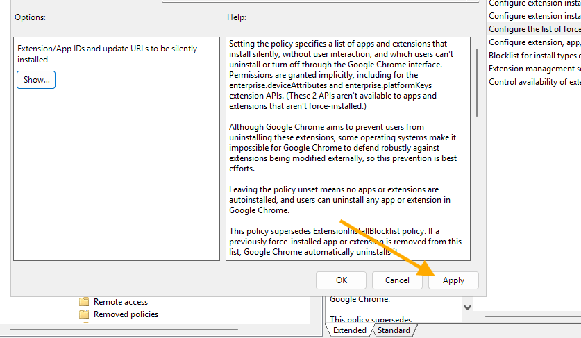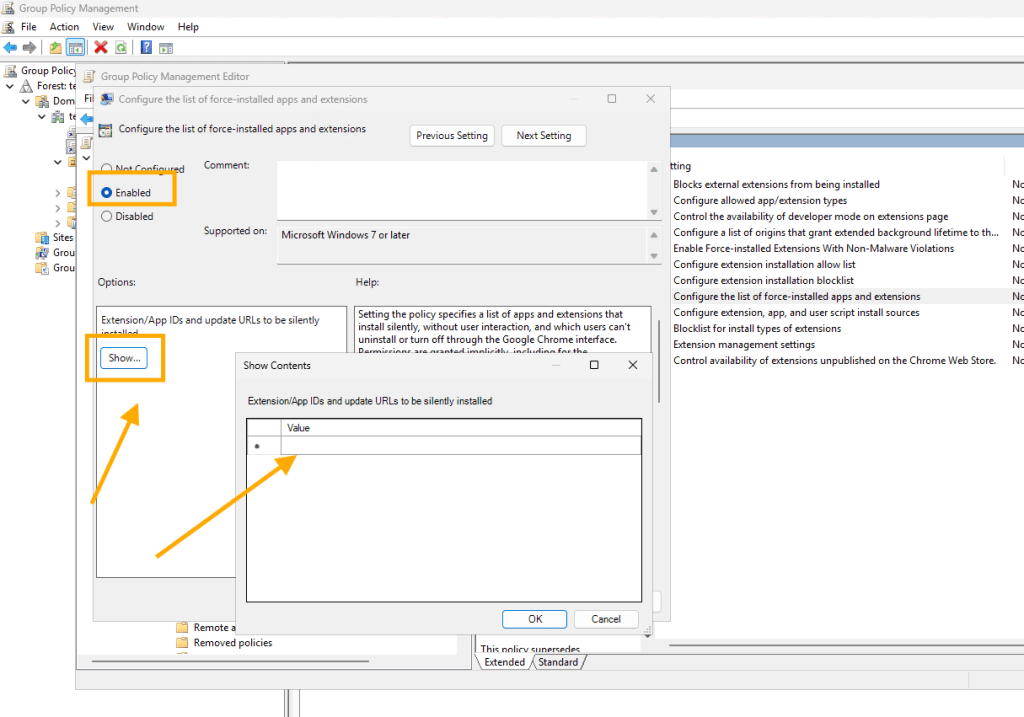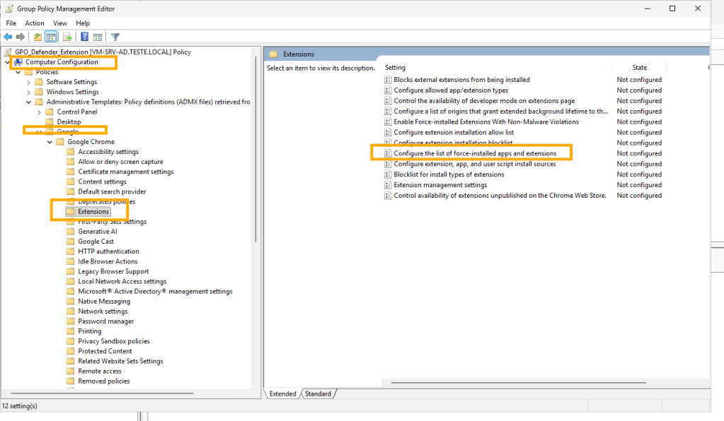 Para aplicar via GPO (Group Policy) uma extensão do Google Chrome, como por exemplo a extensão do Microsoft Defender Browser Protection, você precisa configurar uma política que força a instalação da extensão no navegador Google Chrome.