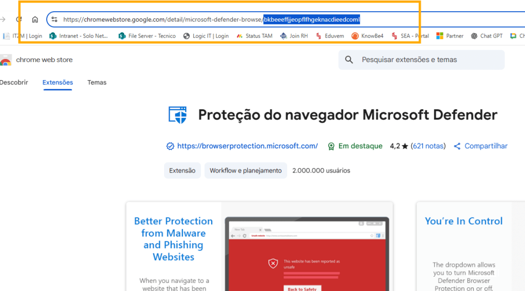 - Camada Extra de Segurança: Para quem usa o Microsoft Defender como antivírus principal, a extensão fornece uma camada adicional de proteção especificamente para a atividade de navegação na web, complementando a segurança geral do sistema.