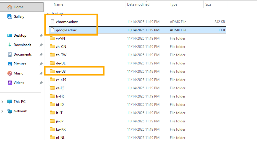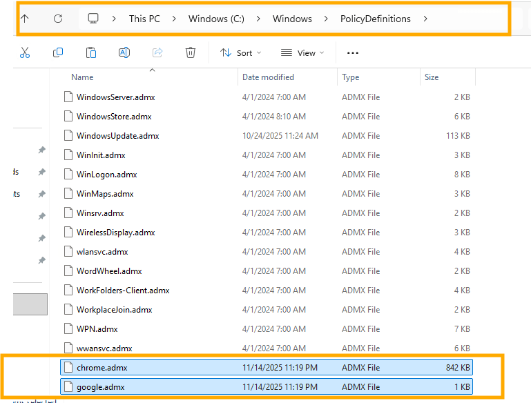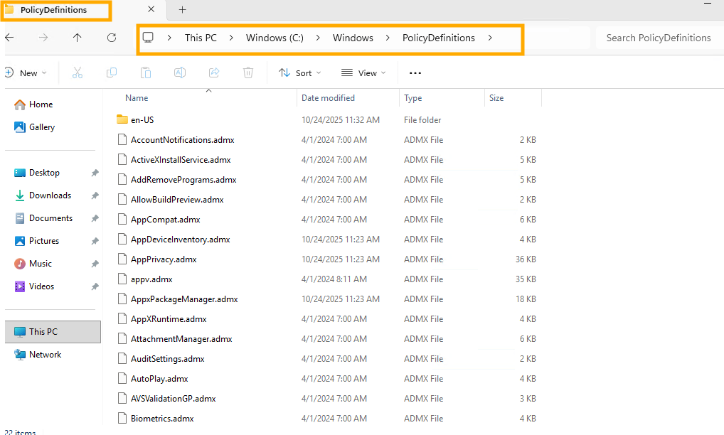 Após descompactar e a pasta, precisamos copiar os arquivos admx para a pasta Windows\PolicyDefinitions .