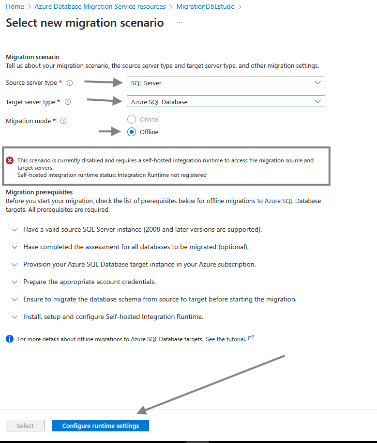 O cenário utilizado será o de migração offline. Esse cenário requer o self-hosted Integration Runtime, que é o foco deste artigo.