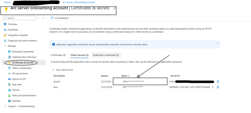 Ainda no Service Principal, é preciso obter e deixar copiado no Bloco de Notas o valor do Secret ID.