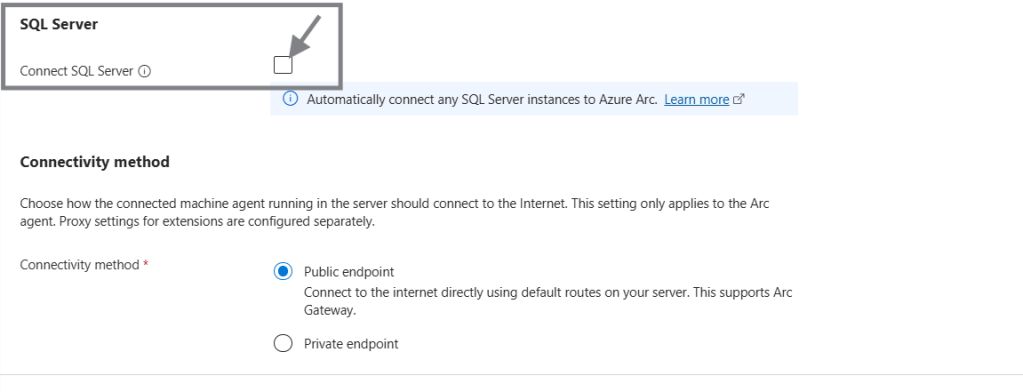 Caso você tenha servidores de instância do SQL Server em seu ambiente on-premises ou em outra cloud que precisem ser gerenciados pelo Azure Arc, marque a opção abaixo: