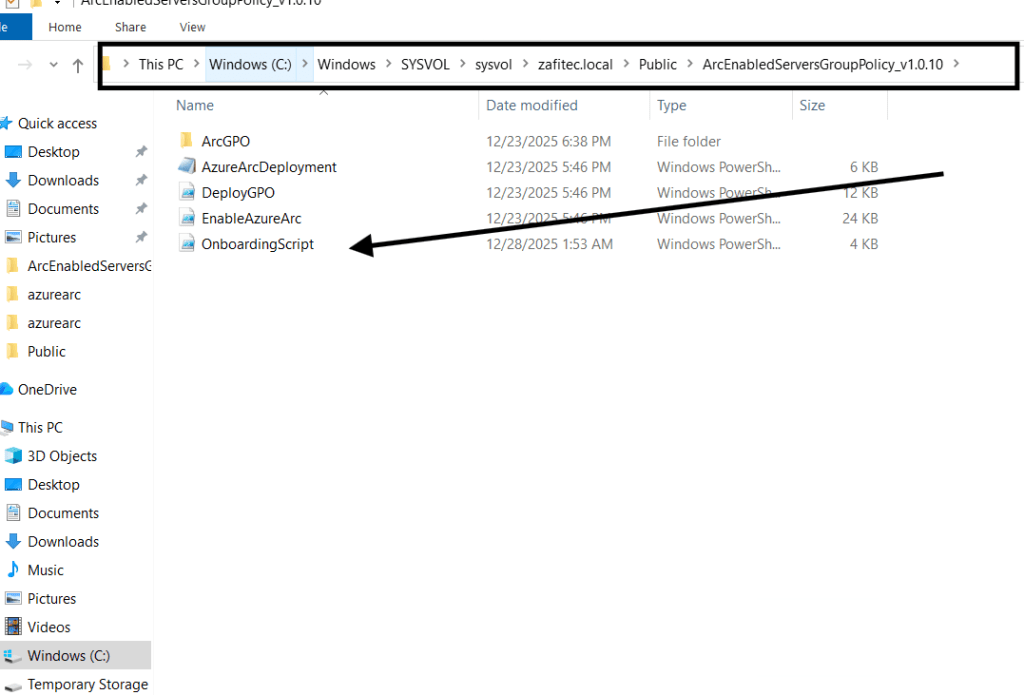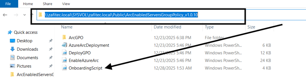 -ExecutionPolicy ByPass -File “\dominio\SYSVOL\dominio\Public\azurearc\OnboardingScript.ps1”