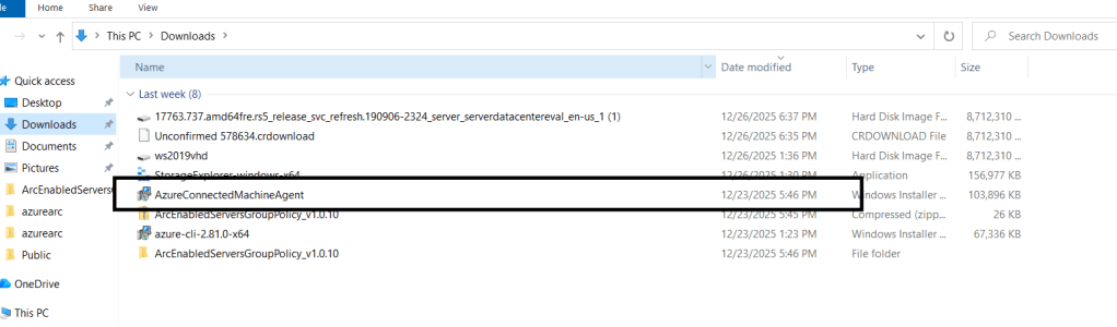 3.1 – Baixe a versão mais recente do Pacote do Windows Installer do Azure Connected Machine Agent no Centro de Download da Microsoft e salve-o no compartilhamento remoto.