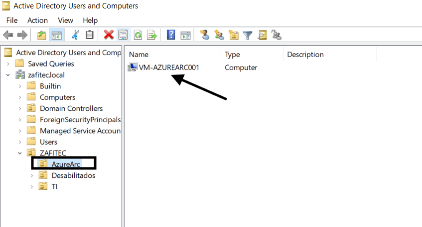 No meu ambiente de laboratório, criei uma OU específica para alocar servidores para integração com o ARC.