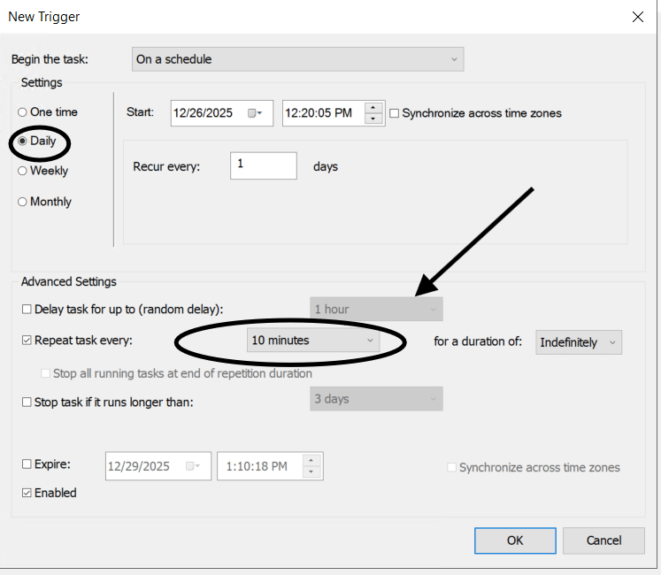 Obs.: configure o tempo desta tarefa analisando seu ambiente.